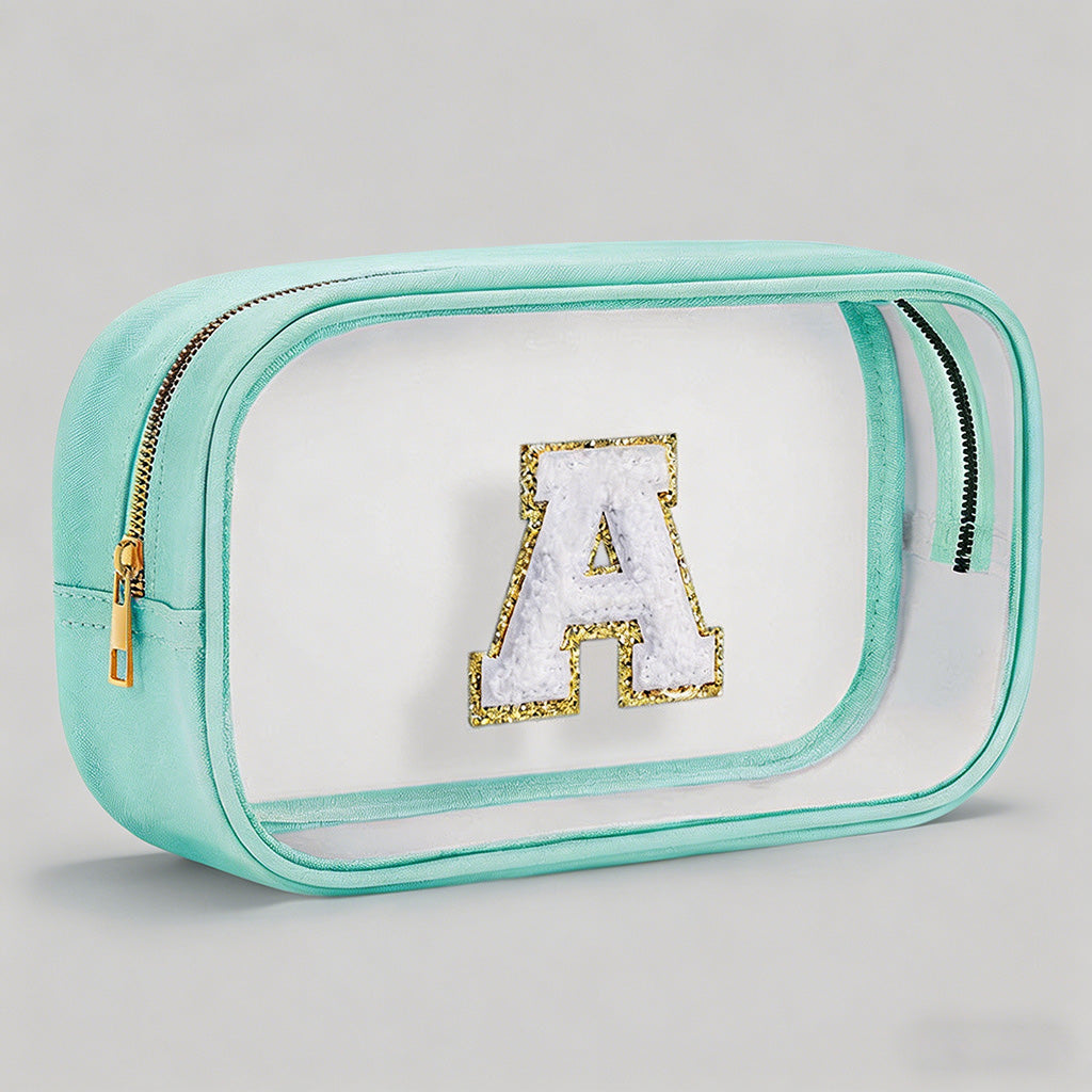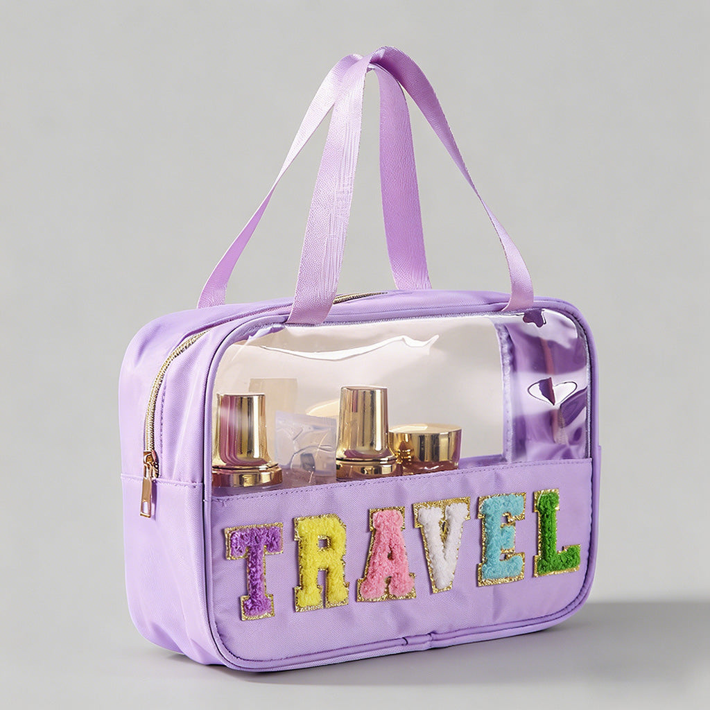 Clear Cosmetic Bag Set with Chenille Patches, 2-Pack Transparent Makeup Organizer, Travel Toiletry PouchesOur Clear...