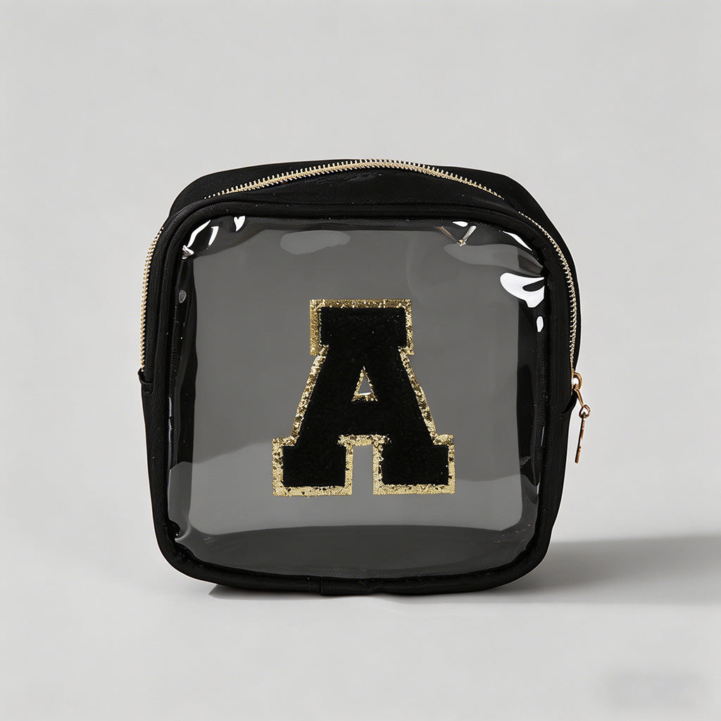 Clear Square Clear Window Cosmetic Bag with Letter Patch, Portable Waterproof Makeup Organizer, Travel Toiletry PouchOur...