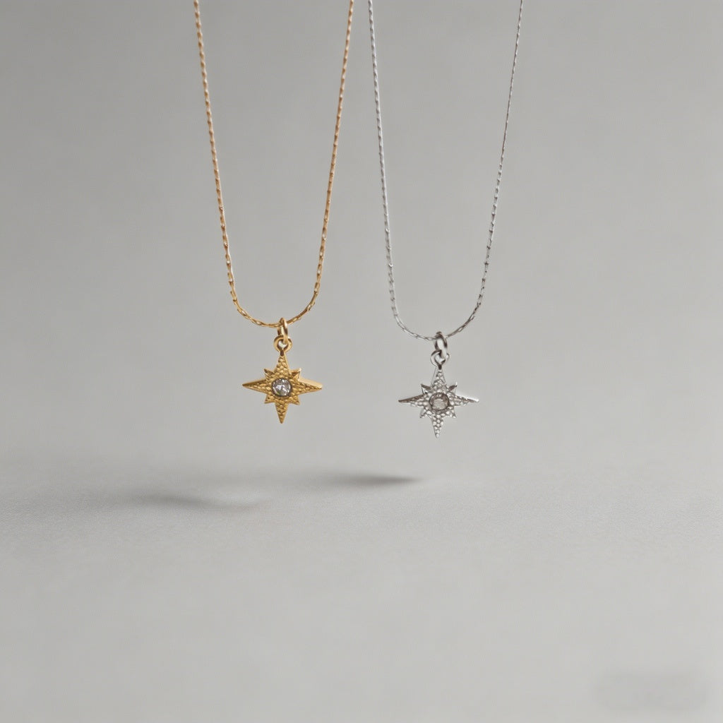 Our Textured North Star Pendant Necklace is a timeless celestial-inspired staple, crafted to bring a...