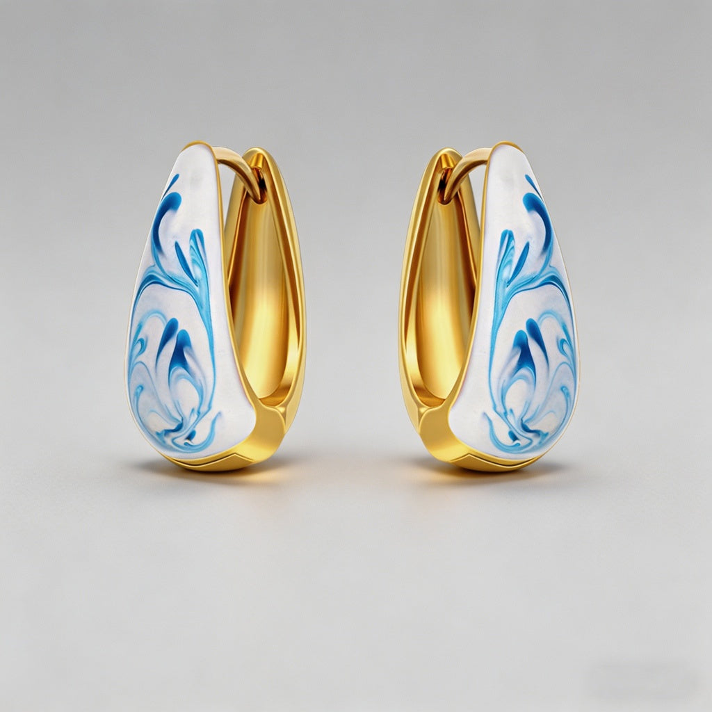 Blue Marbled Enamel 18K Gold Plated Brass Hoop Earrings