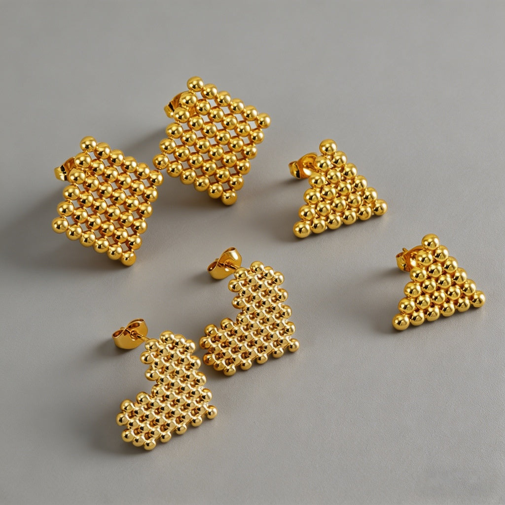 Geometric Beaded 18K Gold Plated Stainless Steel Earrings