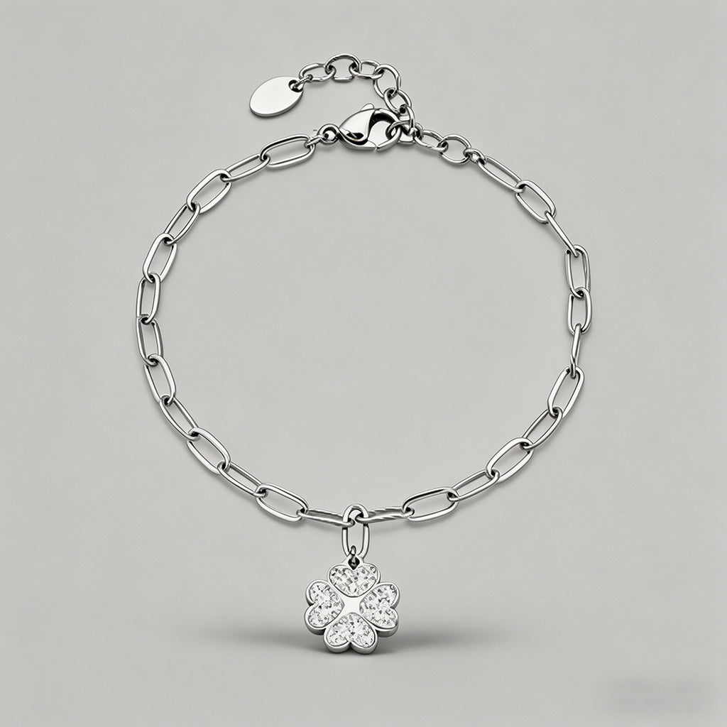 Our Crystal Clover Charm Paperclip Chain Bracelet is the epitome of effortless elegance for summer...