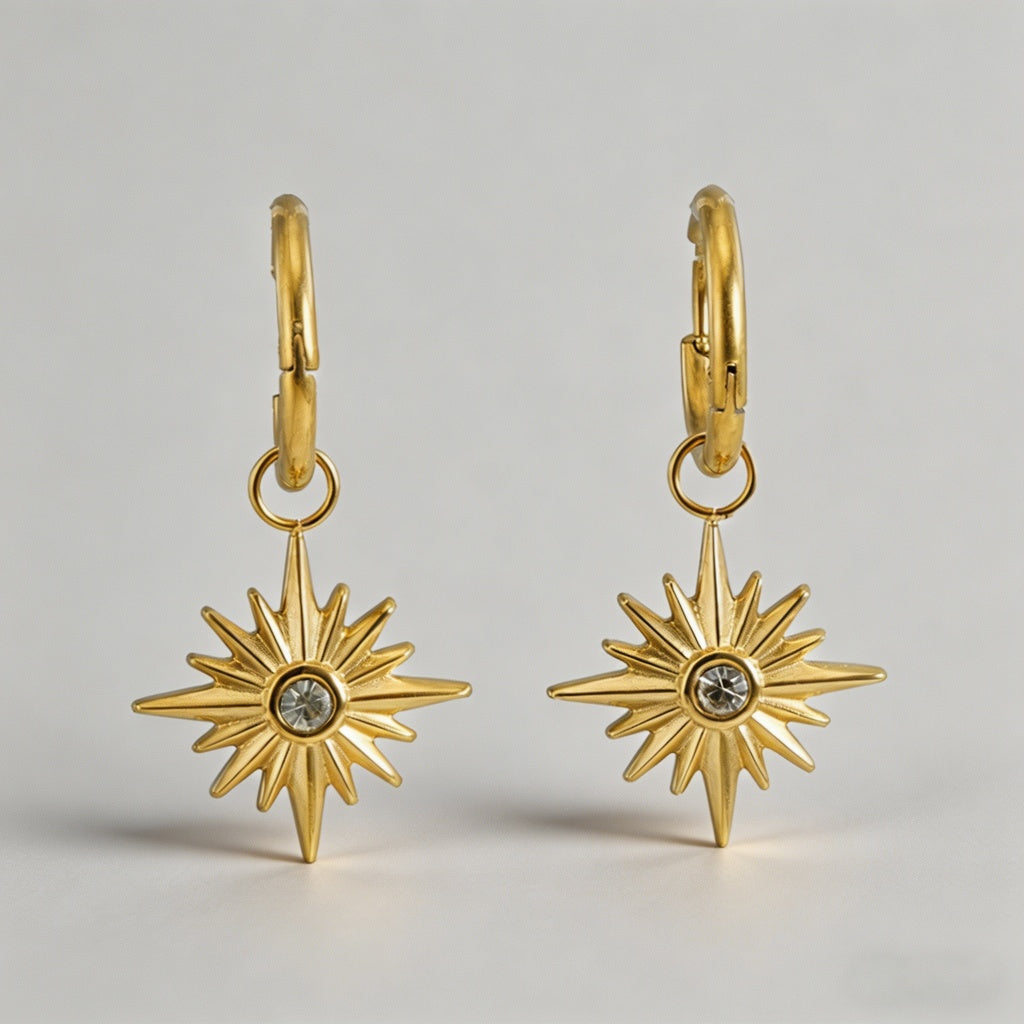 Our Starburst Hoop Earrings are crafted from high-grade stainless steel with premium 18K gold plating...